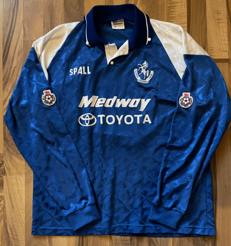 My choice is the 1999/00 away shirt. It’s not necessarily my favourite design. Although it is simplistic and smart, it’s not exactly the ‘95/’96 stripes or classic nineties ‘90/’91 (my favourite as a kid), however it is obviously one of the most important and iconic as it’s a reminder of my greatest day as a Gillingham fan. Just looking at this shirt takes me back to Wembley 2000 and Andy Thomson’s late headed winner that took the Gills to the second tier of English football for the first time in our entire history. In the past year, this shirt has taken even more significance in my life when I was fortunate to have been given Gills Legend Steve Butler’s shirt (the actual shirt he scored the all-important equaliser in) from that match, signed! I am honoured to own such an important piece of Gillingham history and it is most definitely my most prized possession!