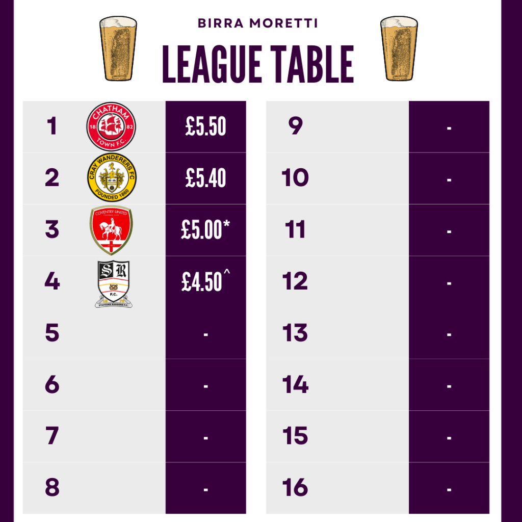 One thing I didnt think about or realise would be so much of an issue is the availability of all the drinks in the Fab 4, we have quite the collection of exceptions building up now but I still find it fascinating to see the price discrepancies between different clubs.