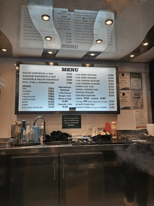 FOOD! Stafford Rangers outsource their matchday offerings and have a traditional but reliable burger van on the scene. All of their wonderful hearty offerings can be seen below and I have to say i am quite intrigued myself by the Roast pork bap…might be worth a trip just for one of those!