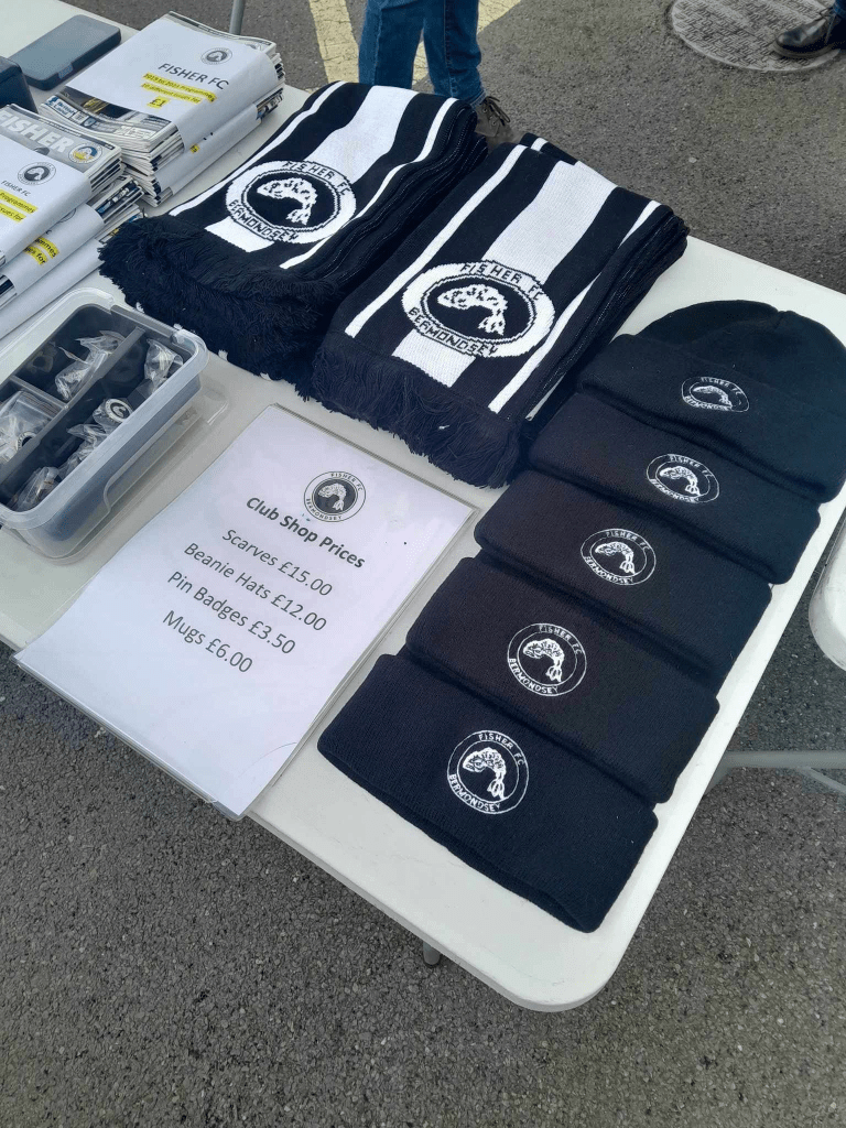 Fisher Fc have their own pin badge on offer (as shown below) the pin is a must have for the collection and if nothing else just remember that every little helps for non-league clubs!