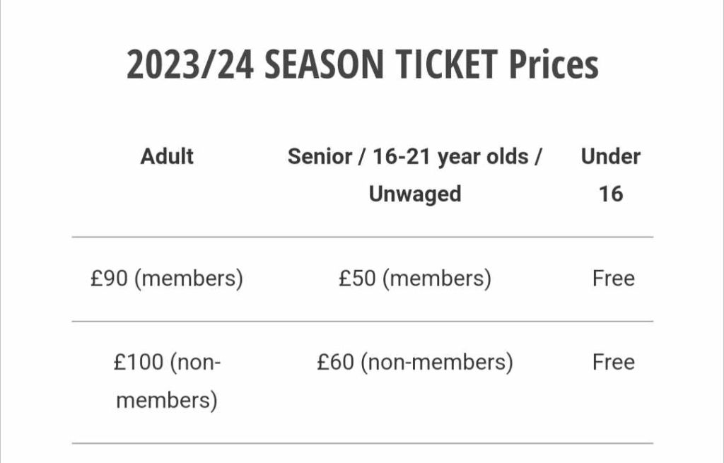 Keep your eyes peeled as next years season ticket prices are due to be announced soon!