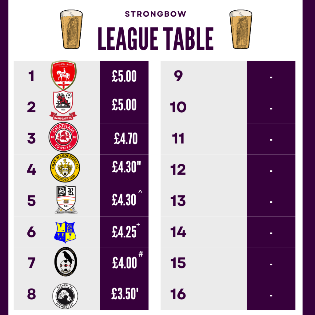 Now the first thing I noticed was that in terms of alcohol prices, Coalville are the best value for money (if you want a Pint). As mentioned earlier that is a great selling point as there are some thirsty punters at Coalville and these cheap prices for drinks are only going to serve the club well !