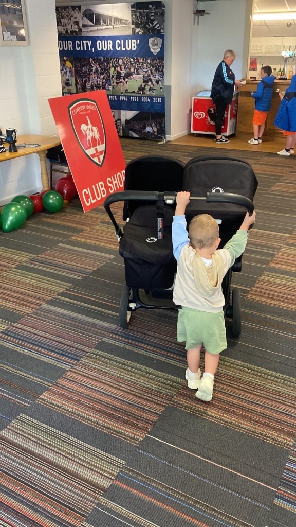Simple answer, Nappy Changing. I took a 3 month old Marley to the CBS Arena to watch Coventry City, no stewards or staff knew where I could change a baby so they actually put me in the back of a bar and I had to change him on a keg of beer. To be honest most the matchday volunteers are so helpful. Wherever we’ve been people are so thoughtful and kind towards us we’ve had no issues, you get the occasional “why would you bring a baby to the football” but usually everyone is so nice and welcoming