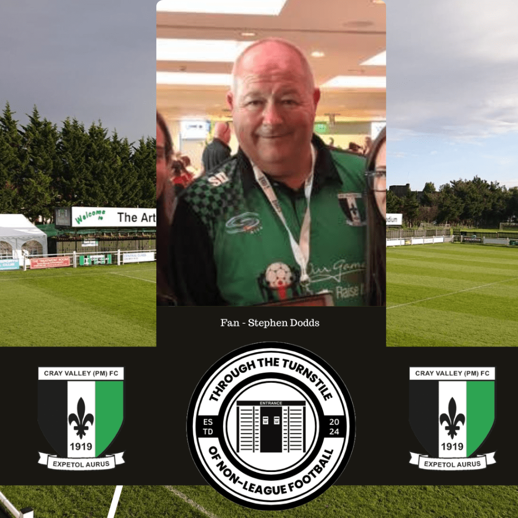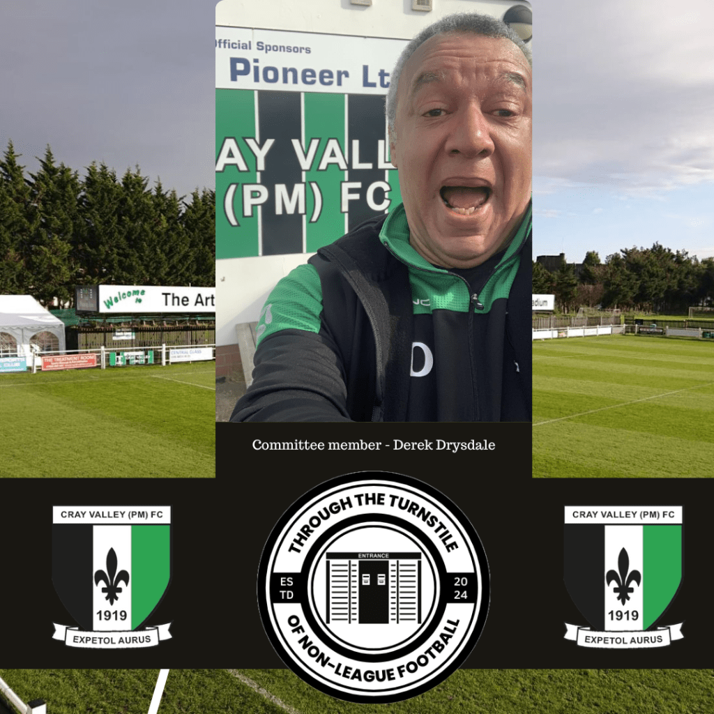 I needed to get back into football again ( you can only take so much shopping with the wife ) and the opportunity came up and I was eventually elected to go on the Cray Valley (PM)FC Committee. I’m now in my 5th year on the Committee and,like other clubs Committees there’s never a dull moment!