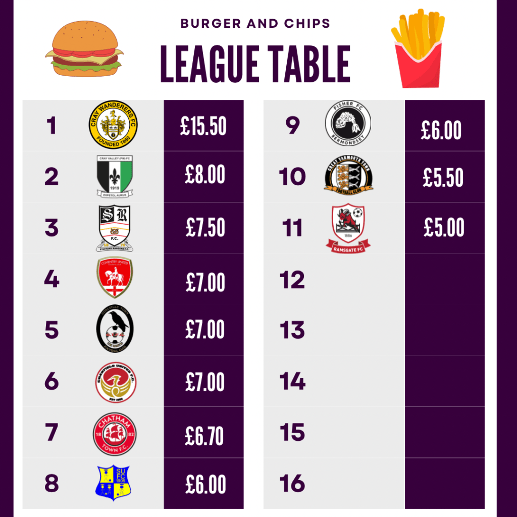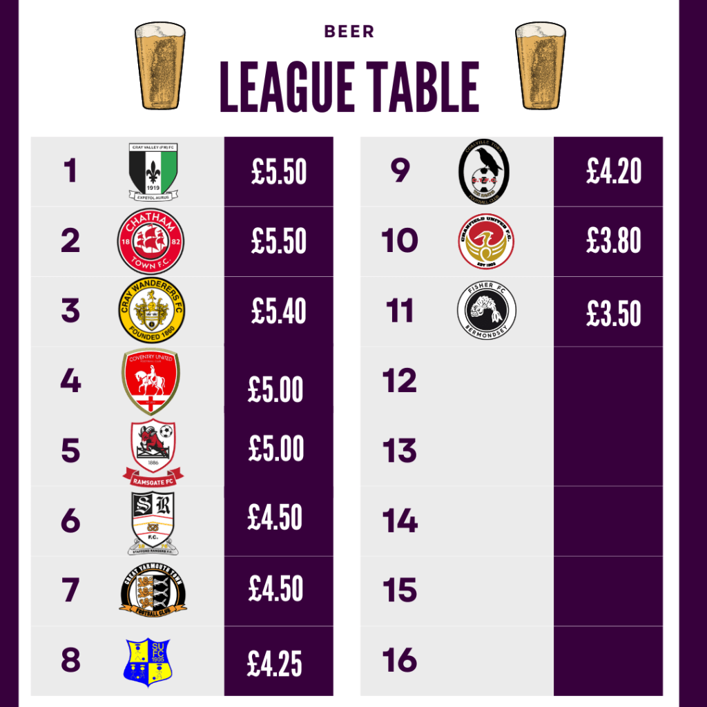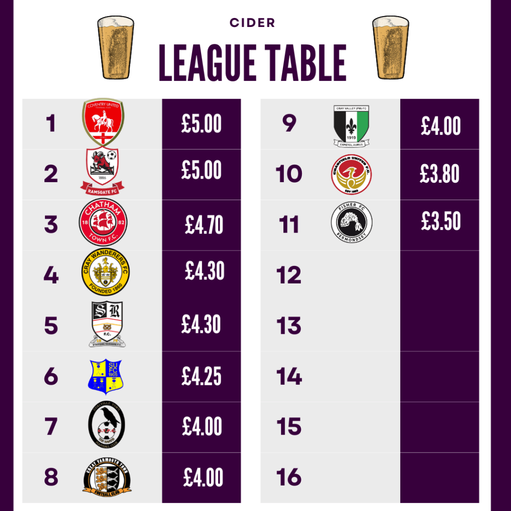 Now as you can see Cranfield Utd are definitley a team/ground to visit if you are feeling particularly thirsty as they offer some of the cheapest drinks so far!