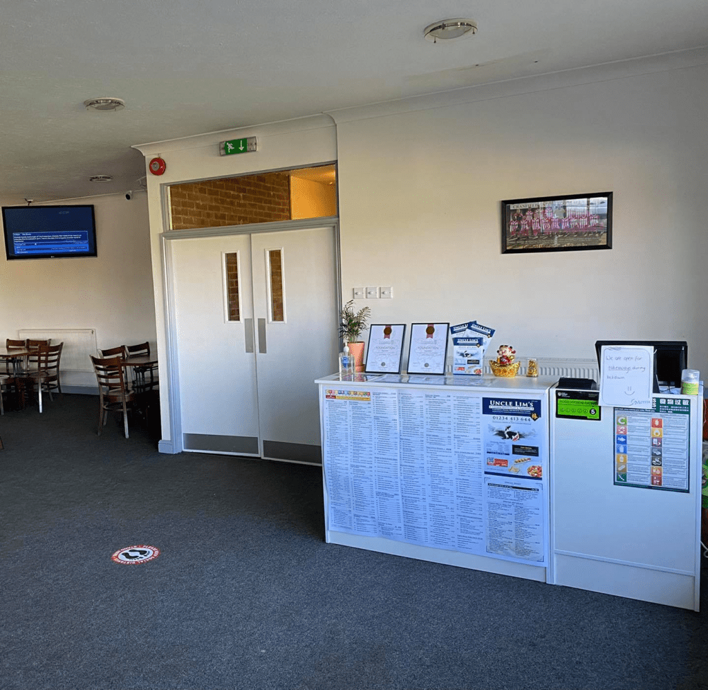 Inside of the stadium Cranfield United have a chinese takeaway, so you can not only enjoy a pint pitchside but you can also enjoy a halftime chinese = winning!