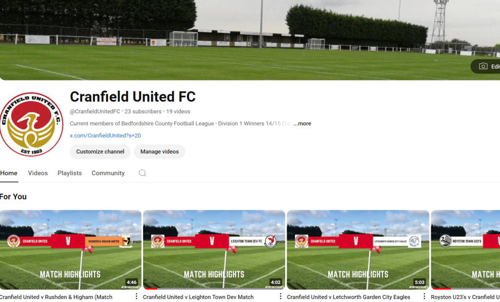 Now one service Cranfield United offer is all of their games are recorded and a highlight package is put together and posted on to their YouTube channel.