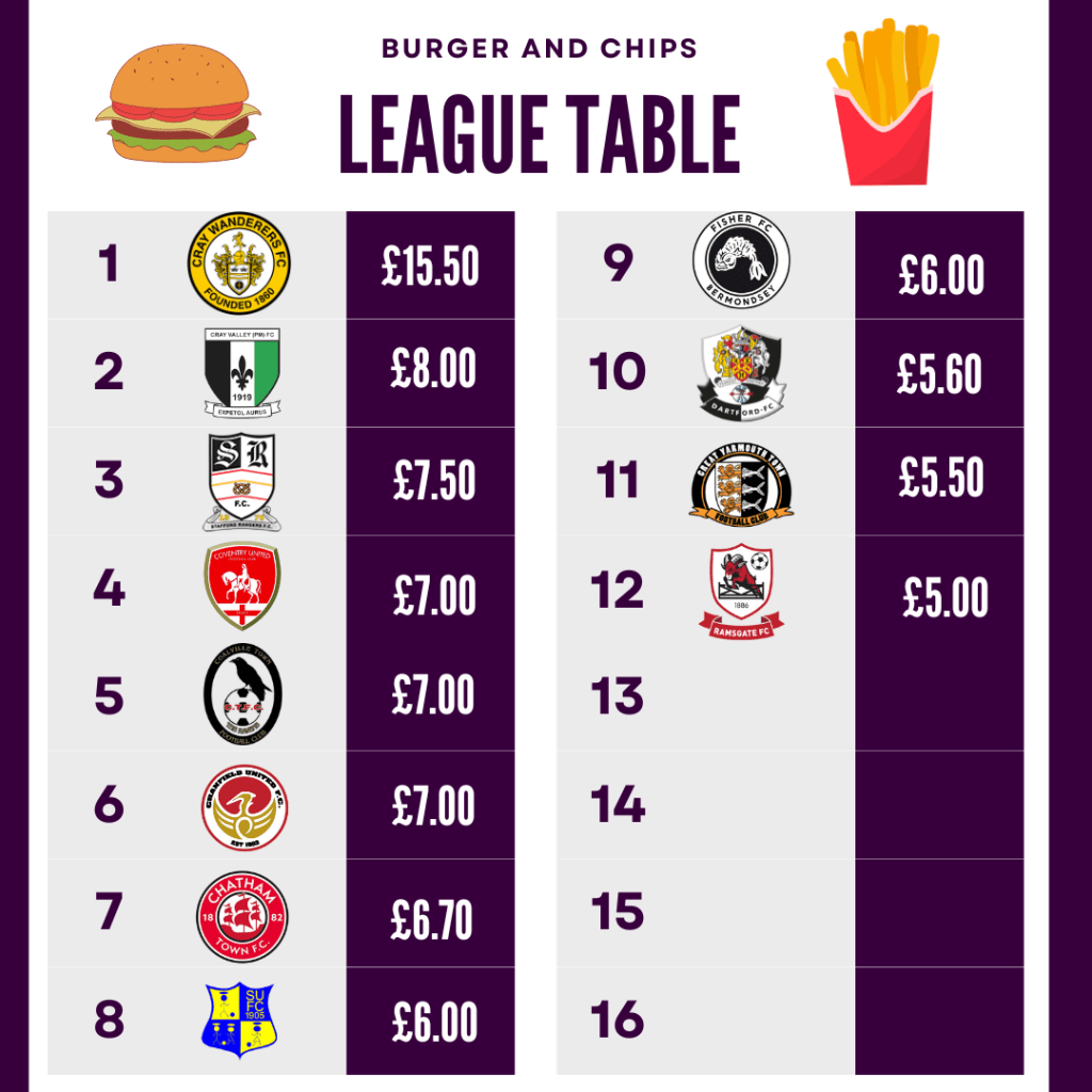Now as we can see Dartford stack up very well indeed, offering one of the cheapest burger and chips for the hungry punters amongst you, as well as a very competitive and value for money price on all 3 of the drink choices.