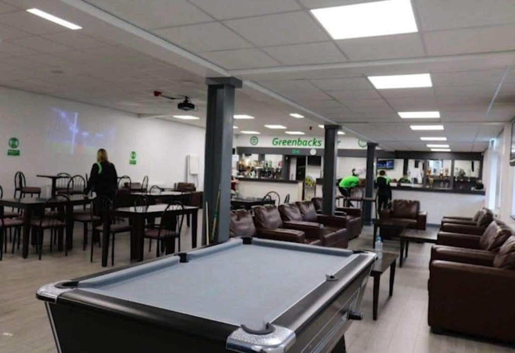 Now as previously mentioned this is the home of Bedworth United and here is the inside of the clubhouse that will serve all of you drinkers, it is quite a large clubhouse that has a wide bar, plenty of seats (including some sofas) and a pool table for before and after the games. So now you know where to head to get the rounds in!