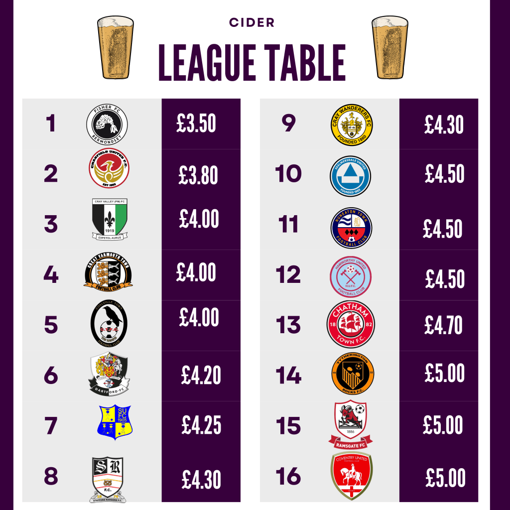 Now at £5 per pint they sit a bit further down the table but and this is a big but (and I cannot lie…) this is for Jeremy Clarkson’s Hawkstone Lager and Cider. So any fans of Clarksons Farm or Clarkson himself, it might just be worth those extra pennies!