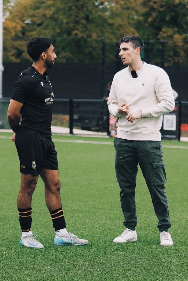Farnham town are doing amazing work, Harry Hugo’s philosophy on how to generate income is incredible. They’ve been so welcoming to us and are climbing the divisions. Yes, they’ve had financial backing but the way they engage with fans and the though behind the projects is super impressive. As for a player, our guy Mo Faal. We sponsored him a few seasons ago, he is a pure goal machine with another amazing story from playing in Italy to Bolton and Non-League.