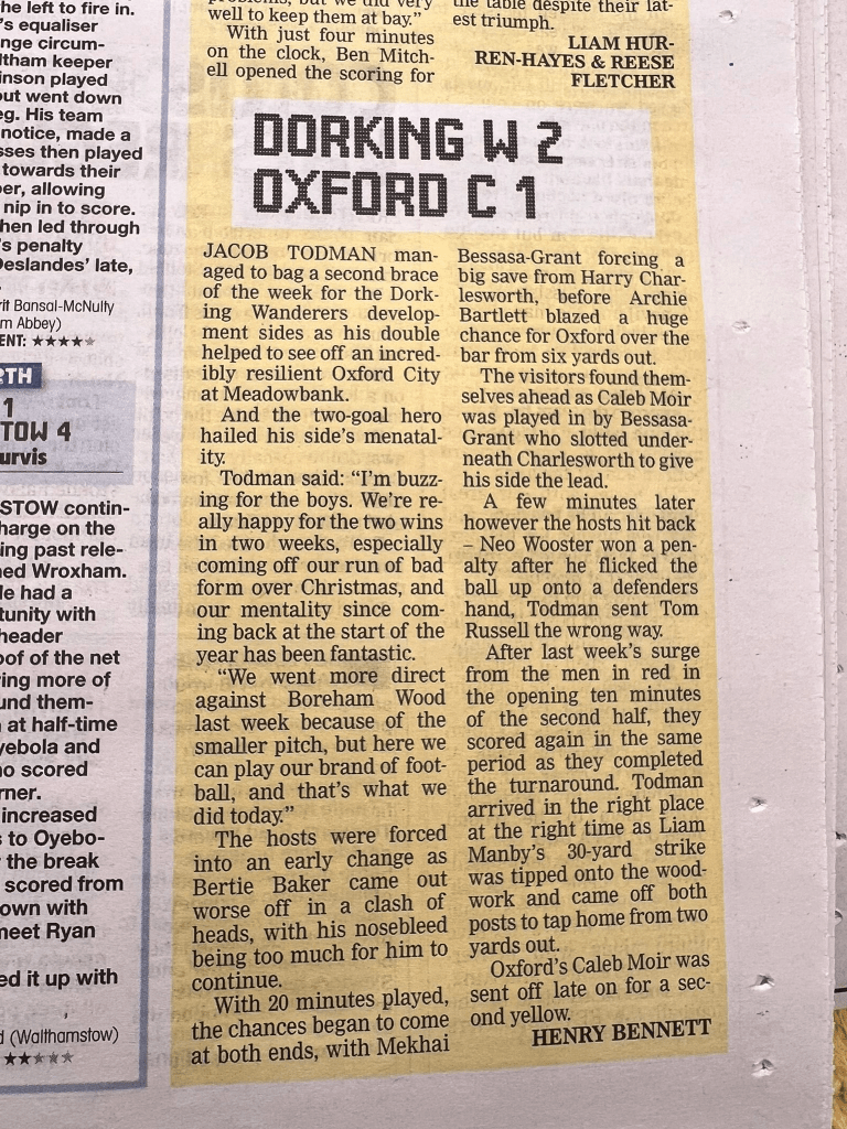 Wearing the badge of any football club on your chest makes it so much more worthwhile, it feels like you’re part of their brand, their family, that community. That’s why I love it at Dorking, it’s special here, but the dream for me is to be the head of media at a top level European football club. I’ve always had a huge soft spot for West Ham United through my grandad, but anything like that I’d take with open arms.
