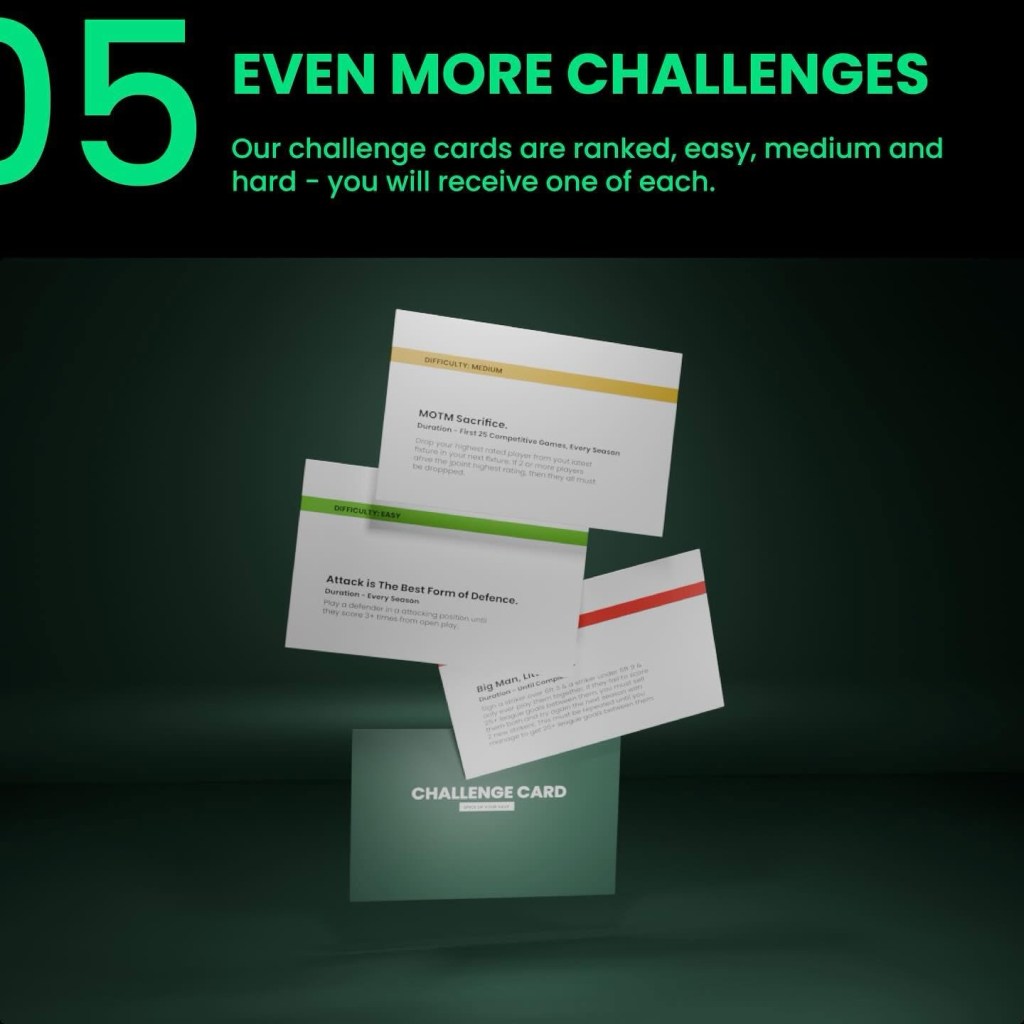 Spice up your save/career Mystery boxes where you get Challenge cards for the save, a match attach pack for a transfer challenge, an envelope for the team you’ll be managing reveal! An FM booklet for the FM pack and you can upgrade to have the shirt of the team your managing too!