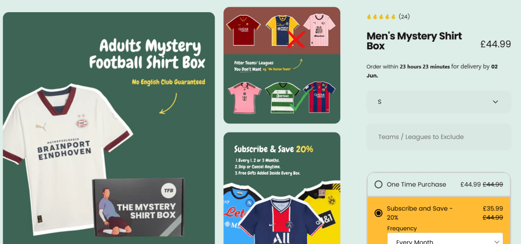 Standard mystery boxes for adults and kids which guarantee no English clubs unlike a lot of these other mystery box companies!