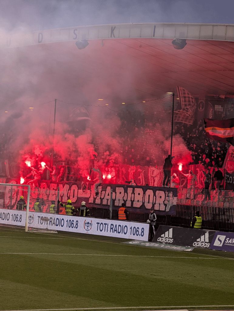 I think the variance in atmosphere and passion between nations is super interesting. Even if you aren’t into football, I often think football culture is a great way of understanding current affairs and political opinions of a nation. Football is the world’s universal language. When there’s a big chance, a VAR decision, a red card. You can feel the same emotion, the same passion that we feel about our teams. I have to admit I’m a big fan of ultras culture when done right! The tifos, the pyrotechnic displays. I think it looks really smart and makes for a super intimidating atmosphere. This year I was fortunate enough to witness 2 of Europe’s biggest rivalries, Red Star Belgrade Vs Partizan Belgrade in Serbia and Maribor Vs Olimpija Ljubljana in Slovenia. The rivalries are fierce and the displays are incredible to see live!
